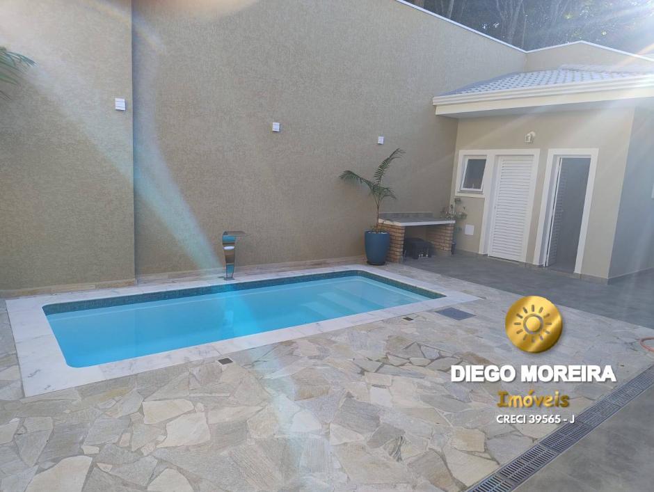Piscina 5,00 x 2,50 m com hidro, cascata, pastilhas, bordas em mármore, iluminação em LED e clorador (infra p/ aquecimento)